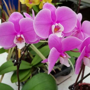 Dans votre panier vous trouverez 6 phalaenopsis : 1 jaune fleuron medium label rose, 1 rose fleurons medium label blanc, 1 rose panaché blanc gros fleuron, 1 rosé bordure jaune mini fleurons, 1 blanc tacheté rose label jaune gros fleurons, 1 orangé rose mini fleurons